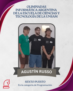 Con mucho orgullo y alegría les compartimos que, el Colegio Jockey Club Córdoba de Córdoba capital, ha obtenido el sexto puesto en la primera instancia de las Olimpiadas Informática Argentina de la Escuela de Ciencias y Tecnología de la UNSAM en la categoría Programación con la participación del estudiante de quinto año Agustín Russo. En noviembre viajará a Bs As. a representar al único colegio de Córdoba Capital que pasó a esa instancia.
